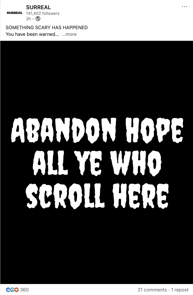 Take Surreal: they went viral by going completely unhinged (with a little bit of British humor) on LinkedIn. Every single post gets hundreds and thousands of engagement from people who have been too fed up with the LinkedIn facade and are looking for something more refreshing and genuine.