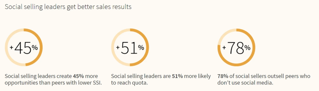 This works especially well on LinkedIn, where the algorithm favors individual creators. Posts from actual people get prioritized in feeds over company updates, and engagement feels more natural. These “social selling leaders” use their personal profiles to: