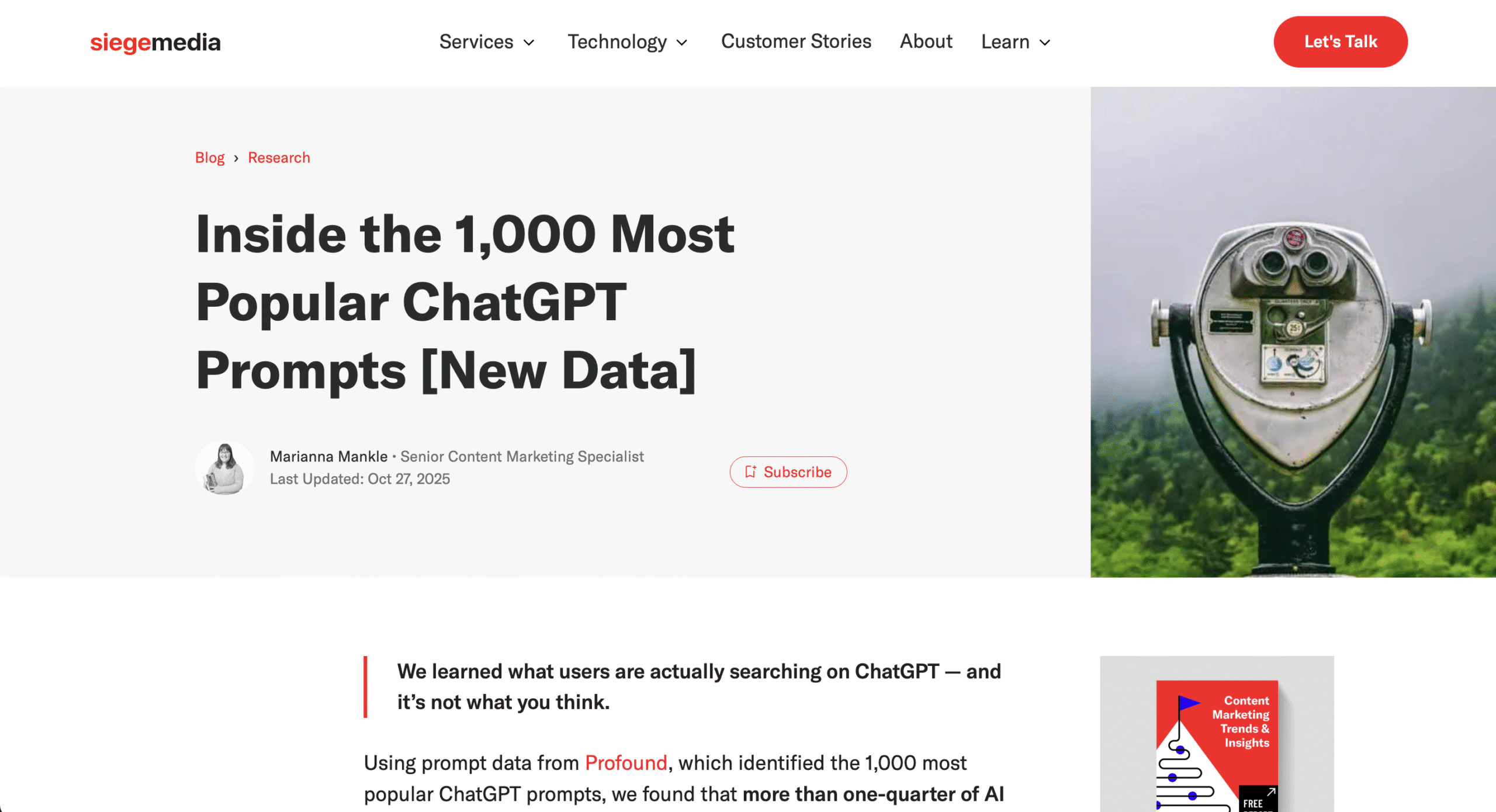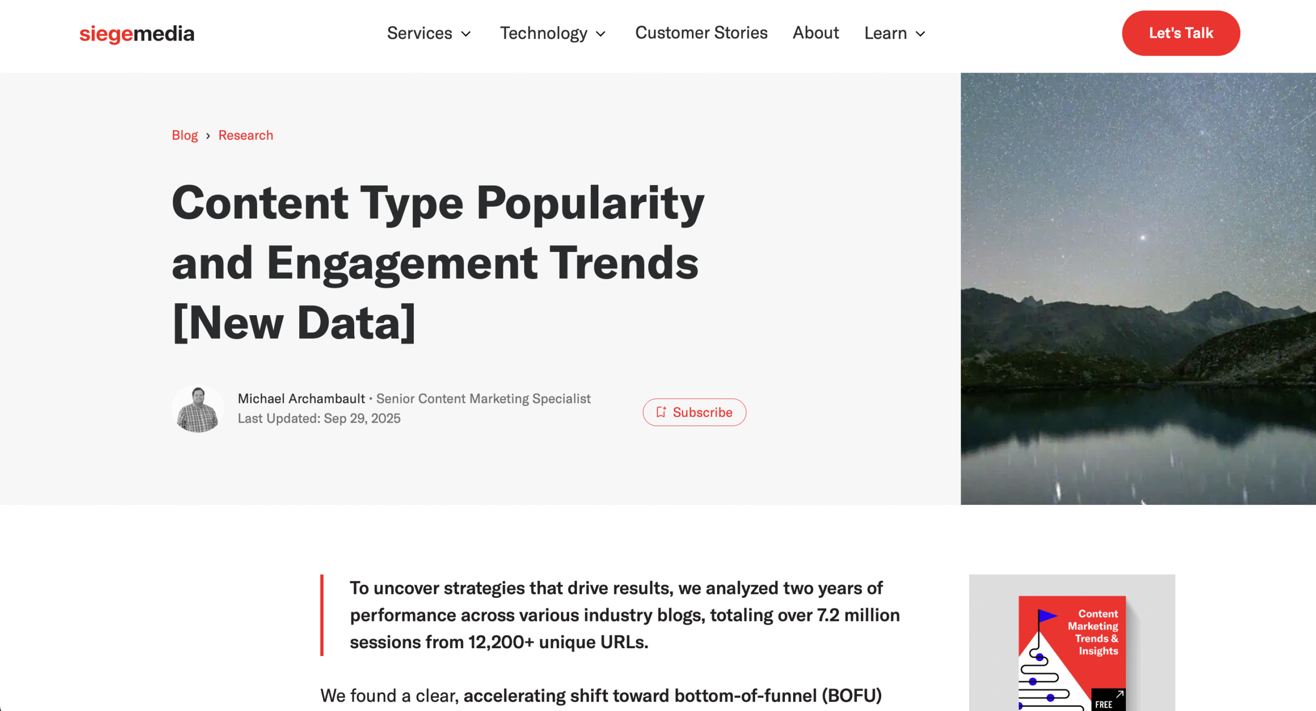 2. Here’s another piece of data-driven thought leadership content from Siege Media. Similar to the previous article, they establishes authority by conduct extensive research. It’s true that effort is the moat for brands.