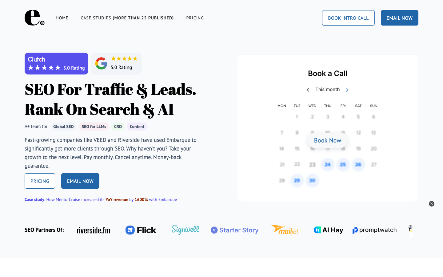 Embarque is a startup-friendly SEO agency that helps you get traction through lean content and fast turnaround times. They focus on quick wins so you see momentum early. Their strength is agility and practical execution.