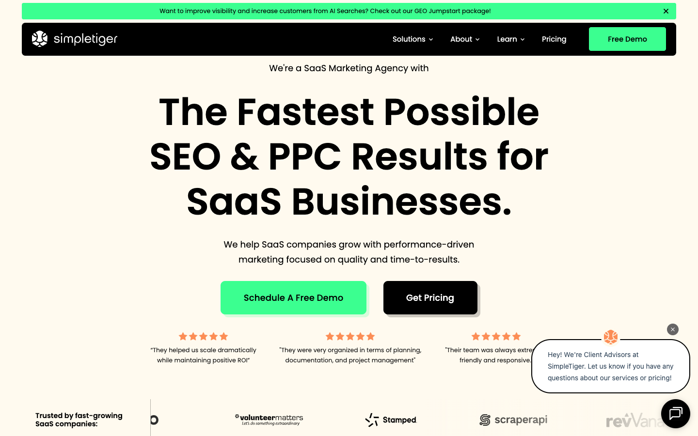SimpleTiger is a niche SaaS marketing agency offering all services needed to grow any SaaS companies to higher levels. They are built around the idea that if you want search-led growth, you want to be work with a specialist rather than a generalist shop. Their own positioning is heavily “fastest possible SEO & PPC results for SaaS,” plus a newer angle around AI search /GEO style visibility.