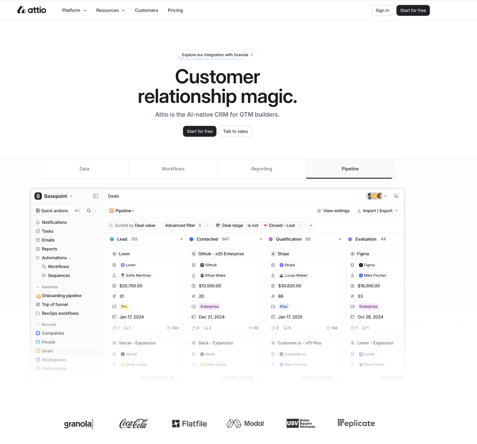 • Design-wise, Attio follows modern SaaS minimalism with neutral typography. This is “serious software” branding