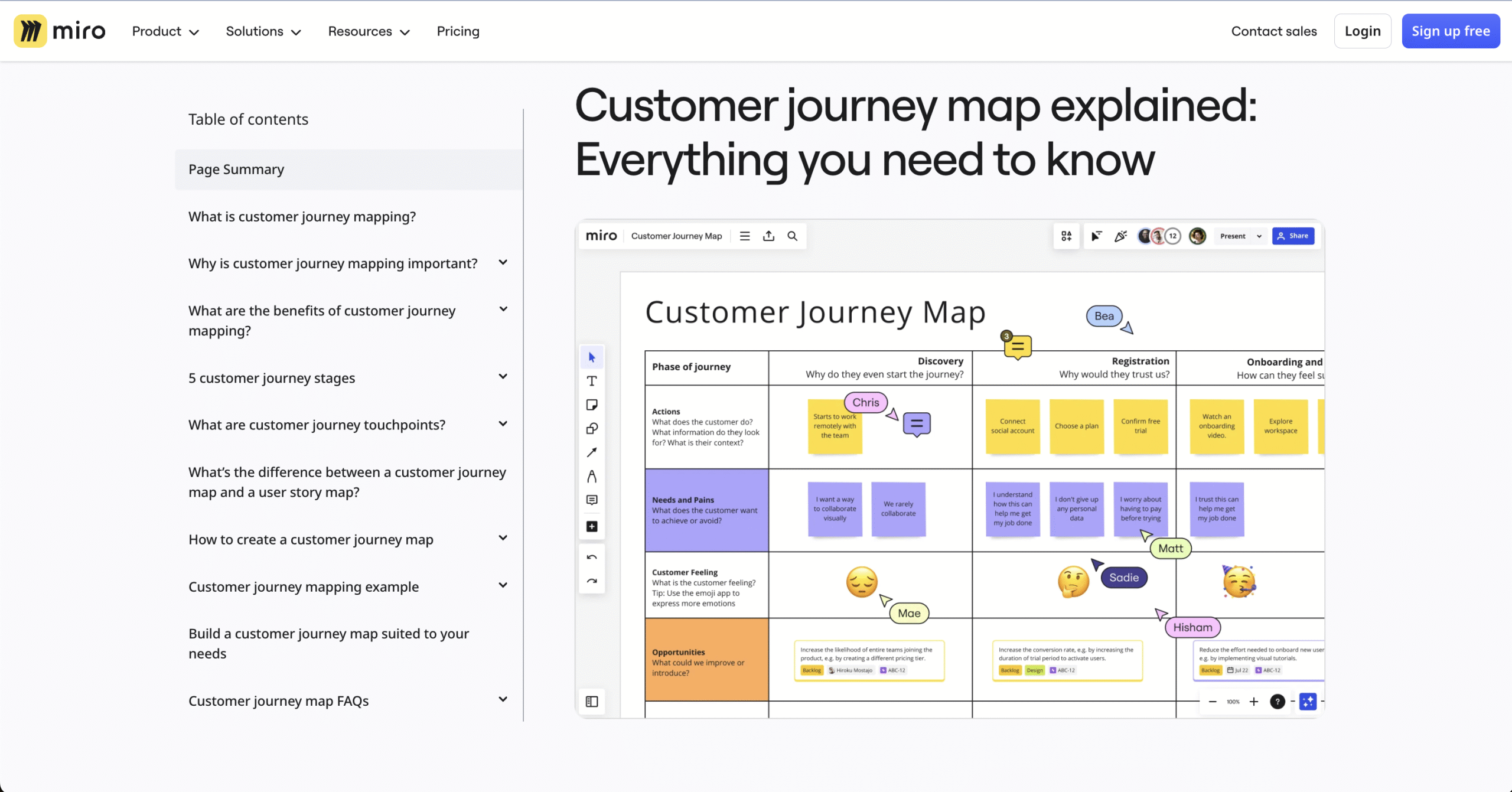 - Miro brings their product design to the customer-facing part. The homepage mirrors the actual product experience of the infinite whiteboard and objects floating around in space. This is called WYSIWYG product marketing (What you see is What you get).