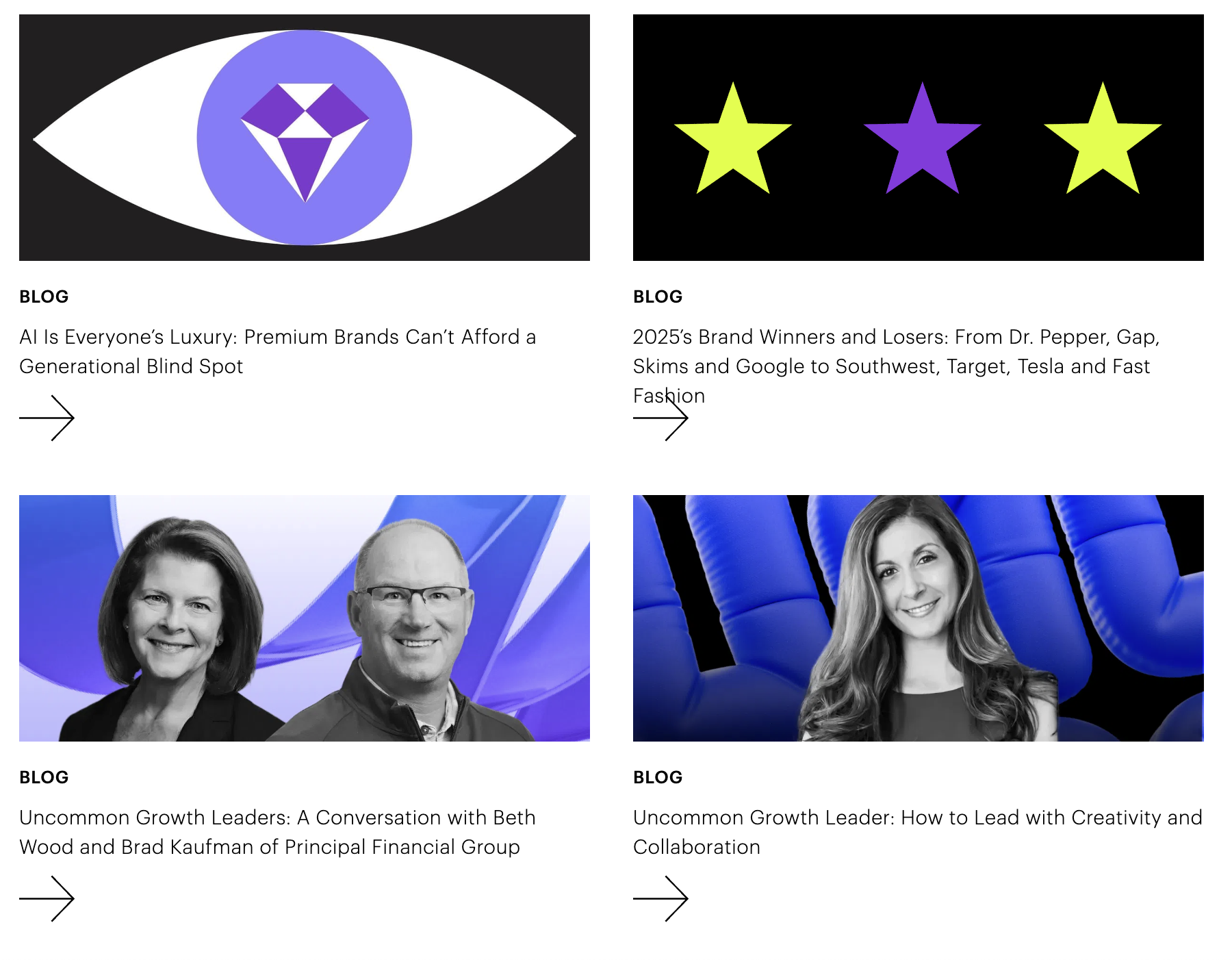 - They also have a “Thinking” section with a wide variety of articles, reports, and insights that establish Prophet as a thought leader in their space.