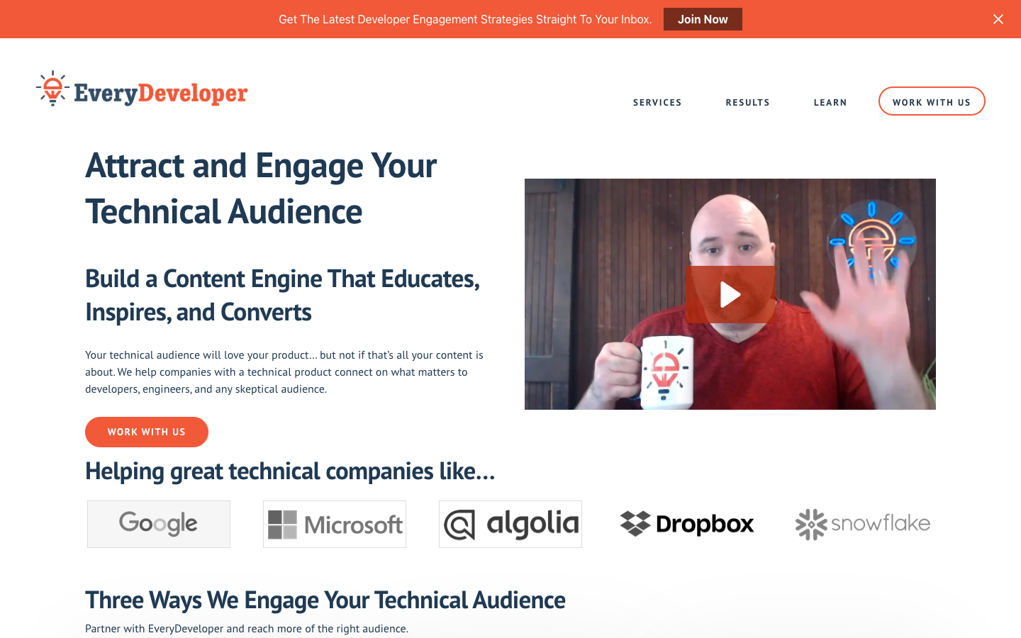Services offered: Engineering-grade technical content, tutorials deep dives, developer education