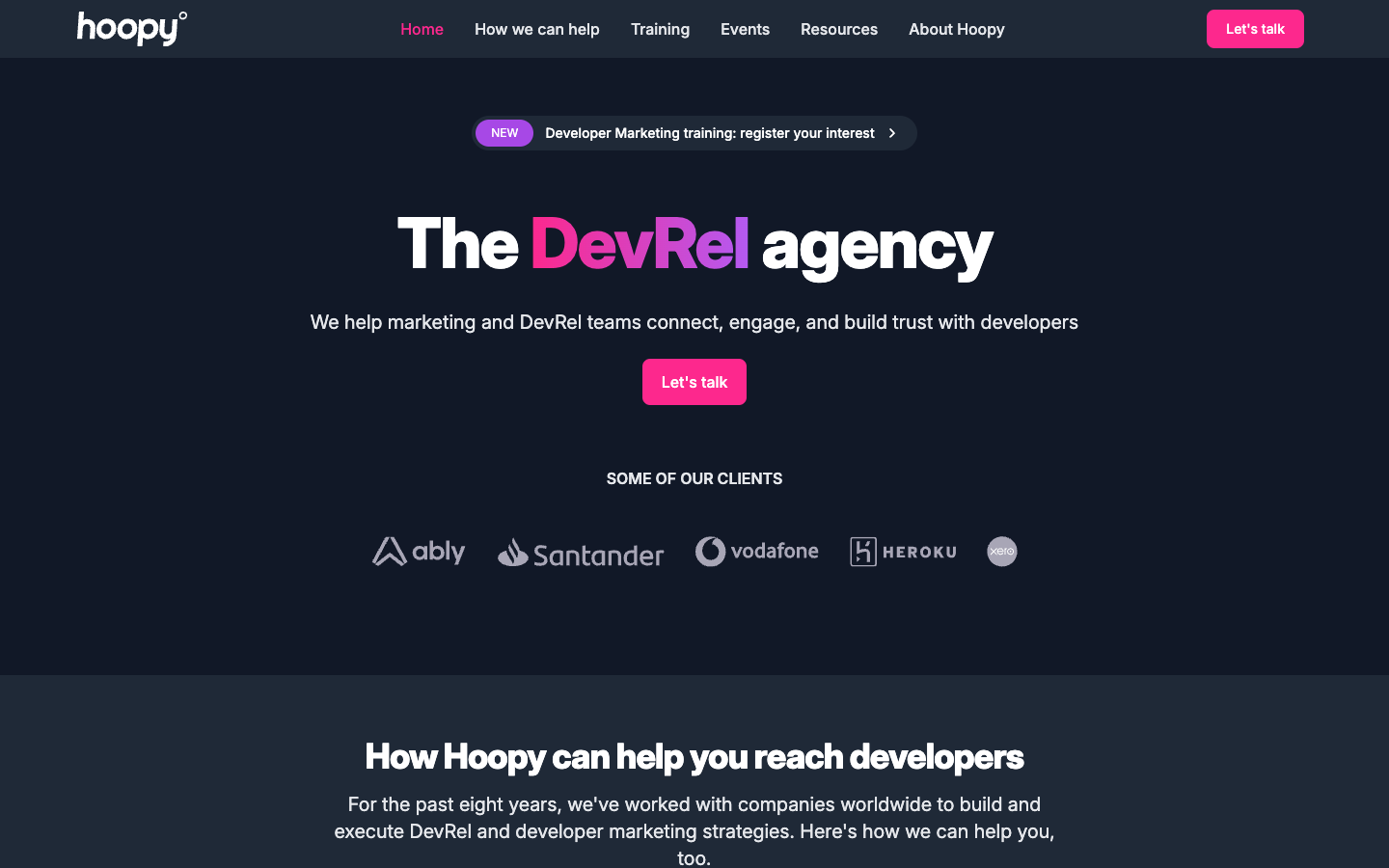 Hoopy is a developer relations consultancy that helps you run community programs, improve docs, and support developer onboarding. They help you increase adoption by making your platform easier to learn and use.