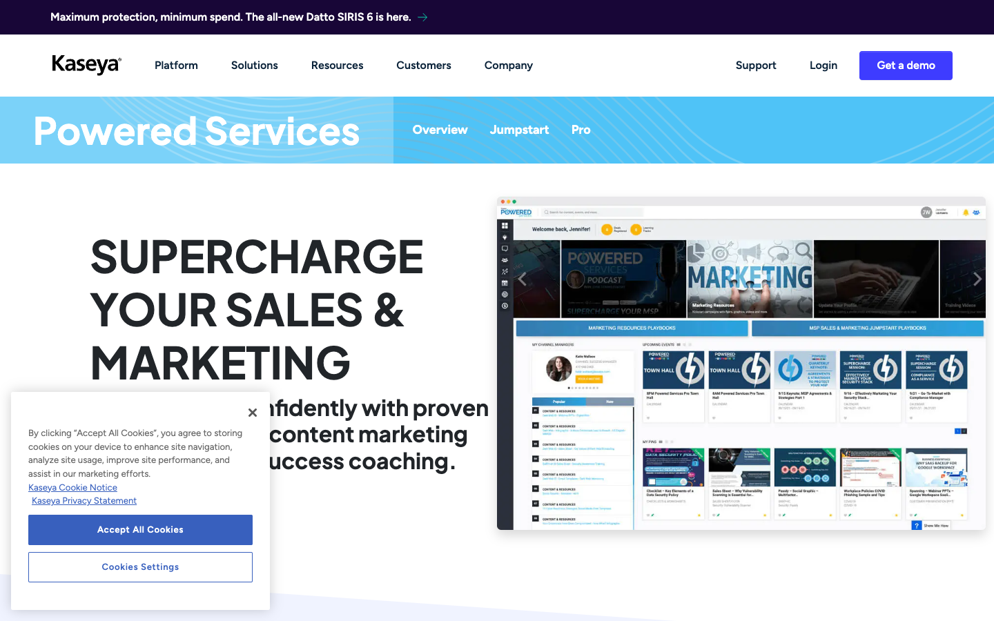 Kaseya Powered Services is a managed IT service marketing agency that offers pre-built campaigns, demand kits, sales collateral, and solution-specific marketing resources. They help MSPs quickly launch programs that promote security, RMM, and compliance services.