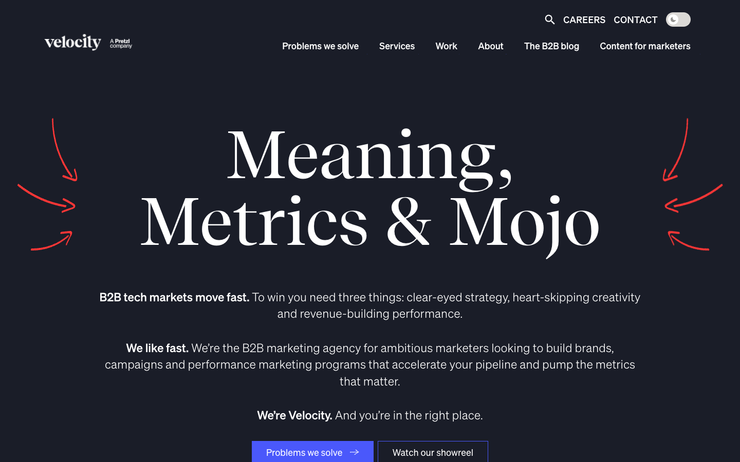 Velocity Partners is a technology marketing agency that offers branding and positioning services. Want your SaaS to stand out in a crowded niche? Velocity Partners is a pretty imaginative and creative agency that can add a new flair to your business. They did a pretty good job at showcasing their creativity with their own website’s UX: