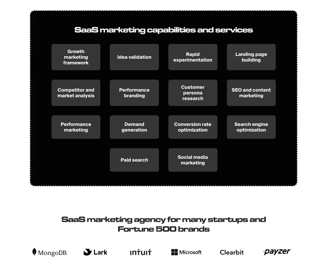 - Services offered: PPC/SEO/CRO, performance marketing, ABM, web development, RevOps