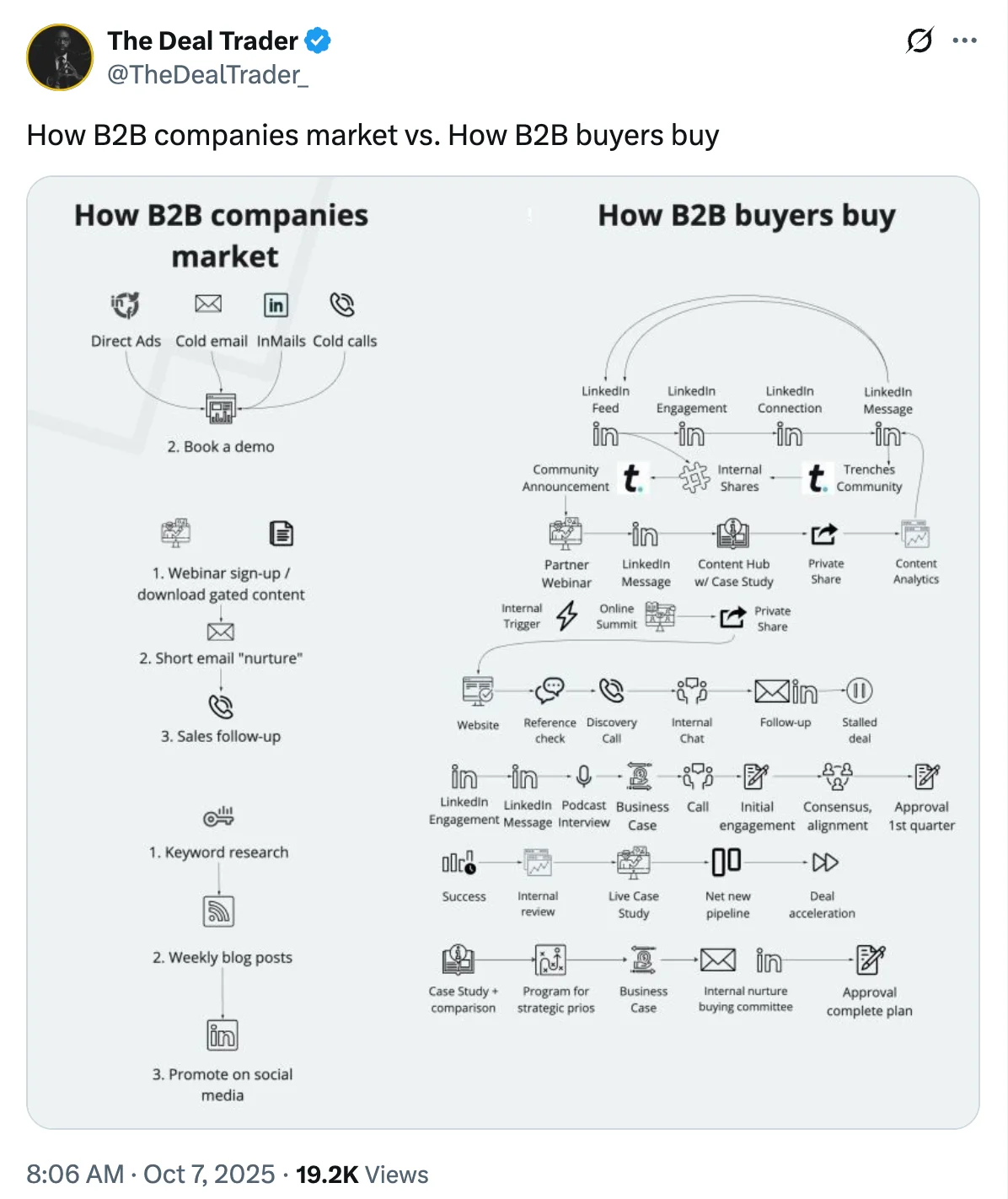 Unlike B2C where buying decisions happen quickly, B2B buying journeys are incredibly complex.