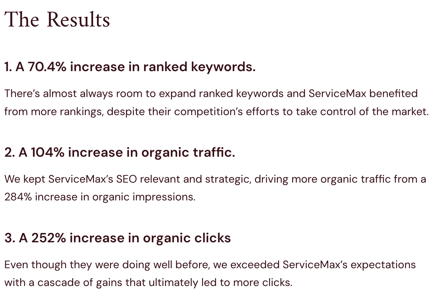 So, if you’re looking for a strategic SEO partner that aligns with pipeline goals, Perceptric belongs at the top of your list. Here are the results we will measure for you: