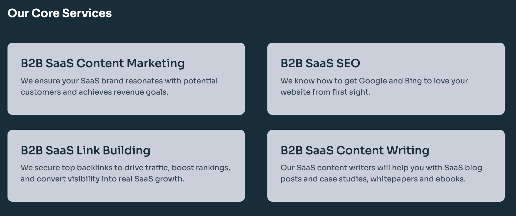 Key services of Powered by Search, B2B SaaS content marketing agency