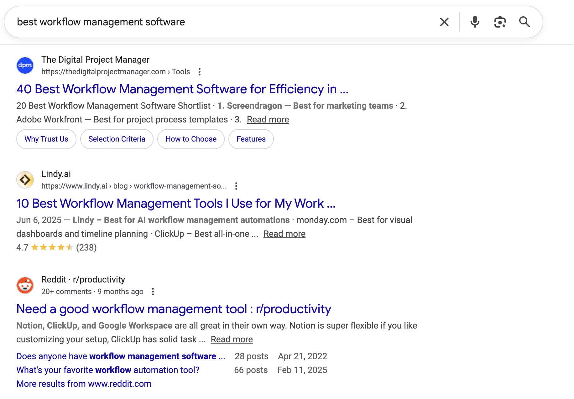 Meanwhile, with SEO, you can appear on Google whenever they search for the queries related to what you offer, and use the opportunity to showcase who you are. For example, if you’re a workflow management software provider, wouldn’t it be nice to be featured in one of these lists?