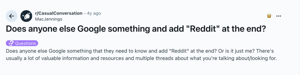 (I don’t use the Reddit search feature though because I find it to be fairly ineffective compared to searching directly from Google.)