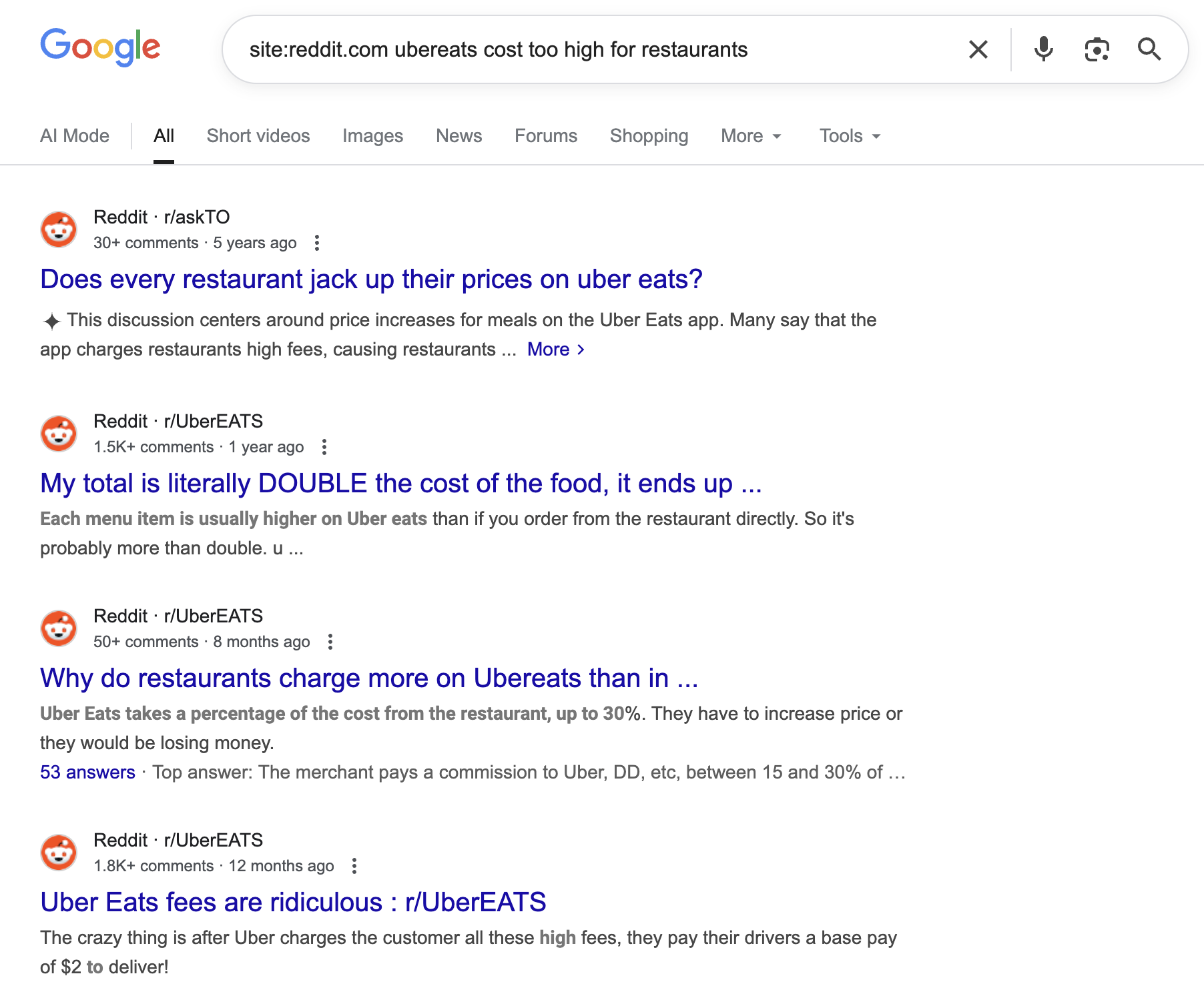 site:reddit.com UberEats cost is too high | Identify common complaints about high delivery app fees |