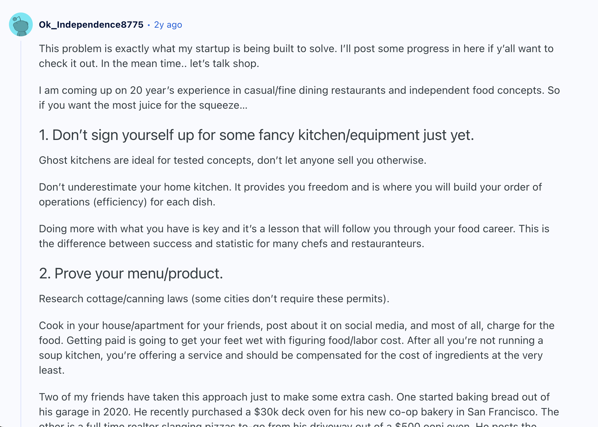 The “Tips for launching a food business with limited funds” post is relevant to owner.com, so I’ll investigate further. Interestingly, the very first comment is from an entrepreneur who launched a startup to solve that exact problem: