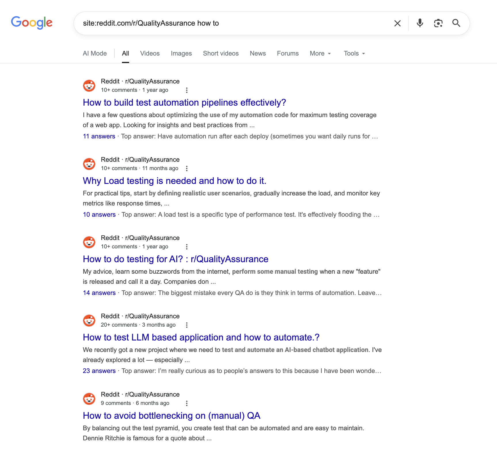 I’ll then use the site:reddit.com/r/[subreddit] [search query] formula to browse those subreddits.