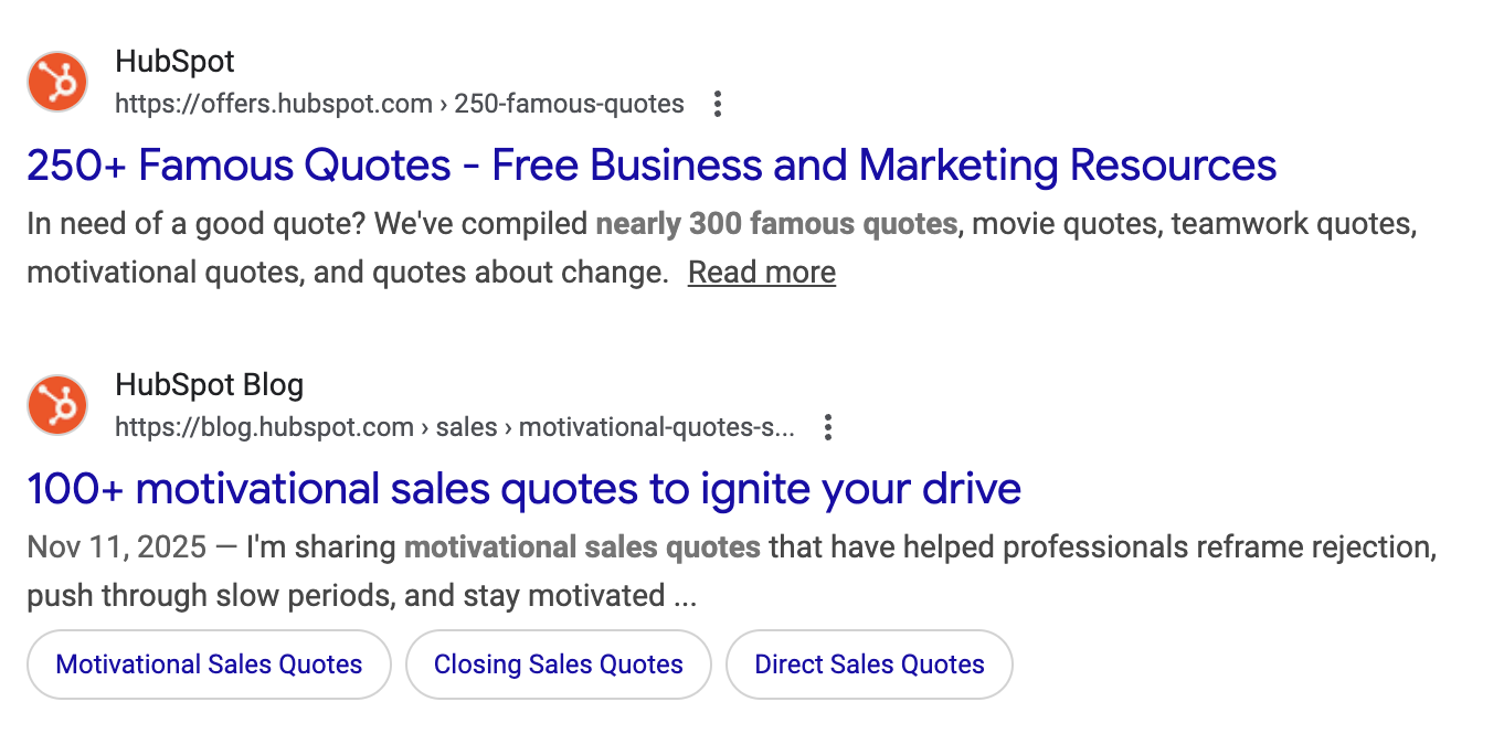 They have written so many authoritative articles covering the topic of inbound marketing that Google will have to rank them in the highest position when it comes to any search queries in that space.