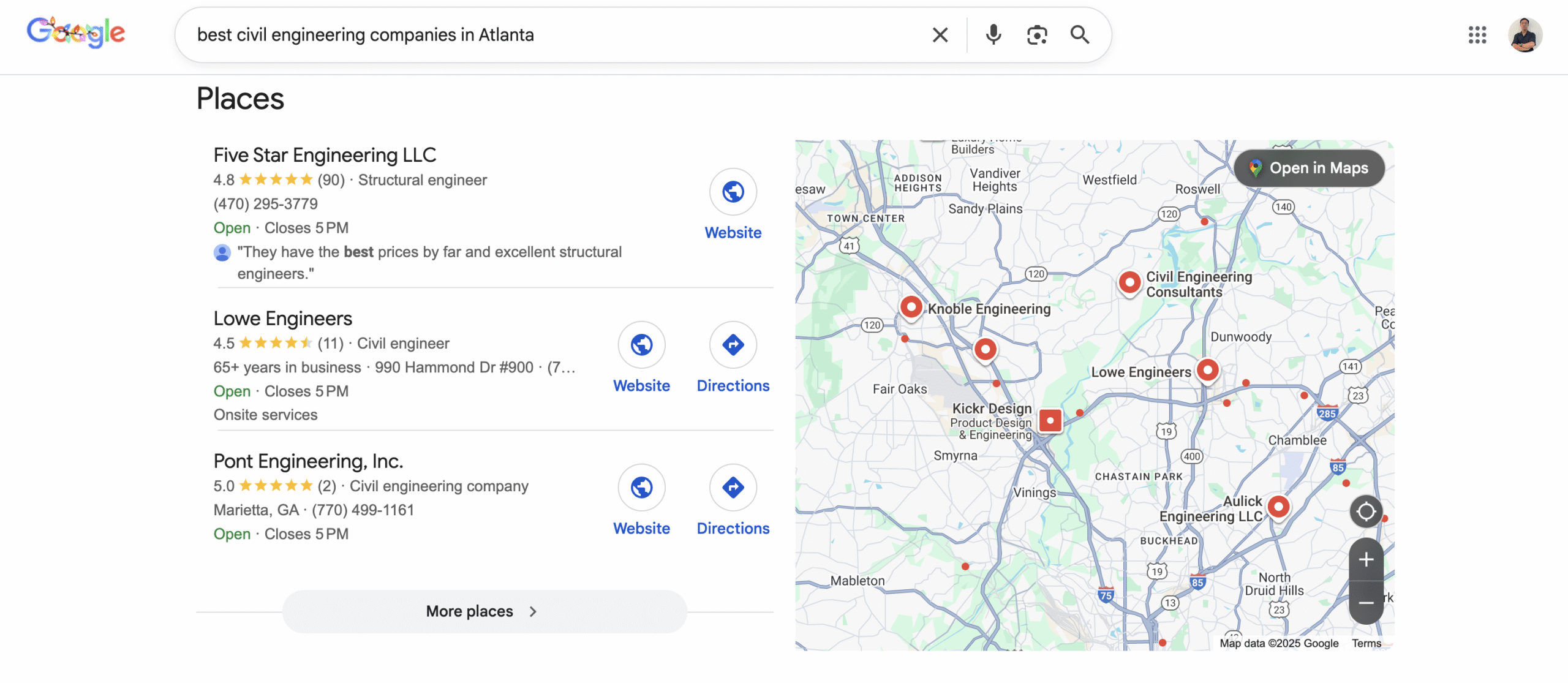 When someone searches for engineering services (e.g., “structural engineering firm near me” or “MEP engineers in Austin”), Google evaluates: