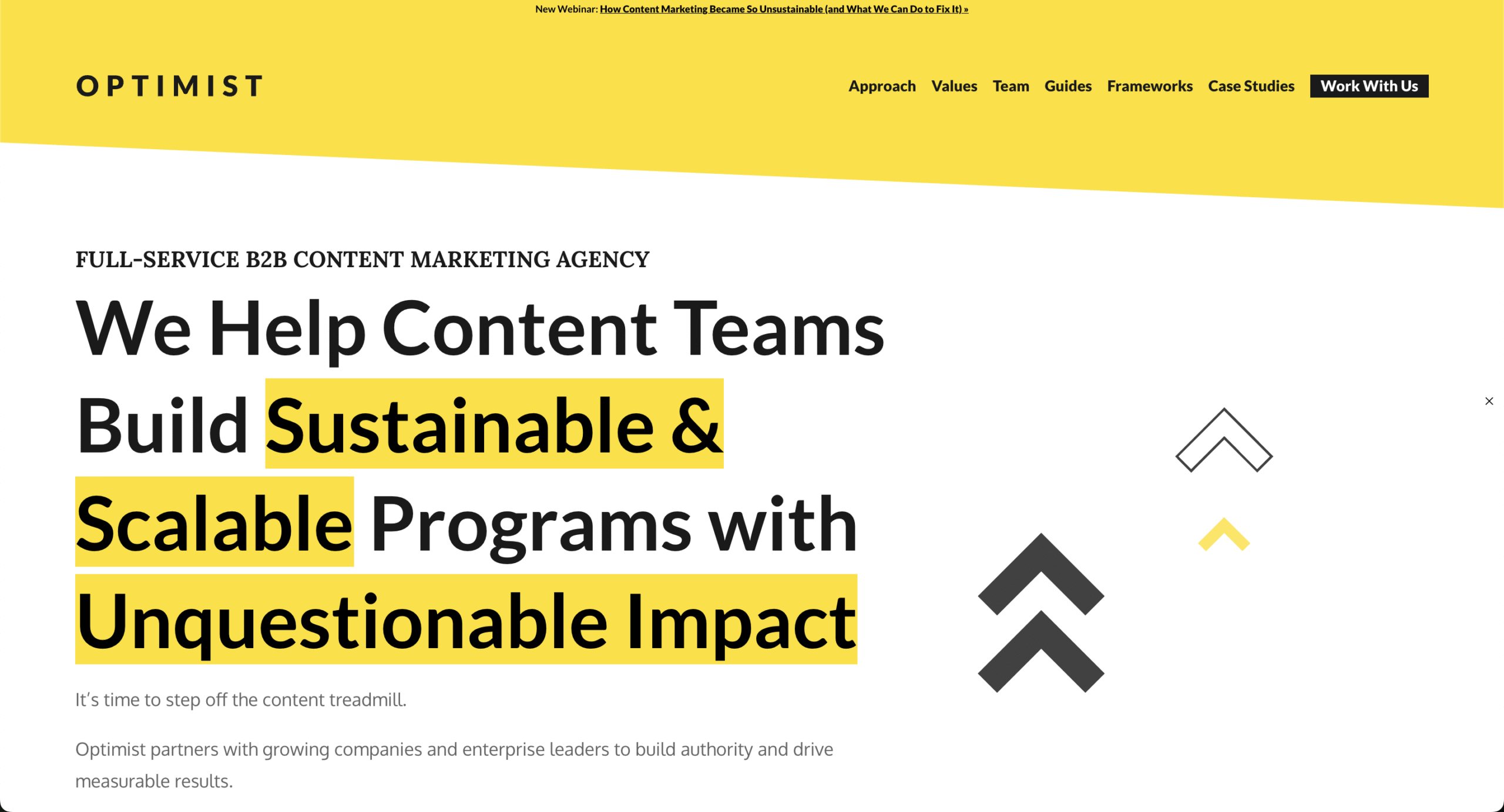 YesOptimist is a B2B content marketing agency who believes that it’s time for content teams to “step off the content treadmill” and start becoming more strategic.