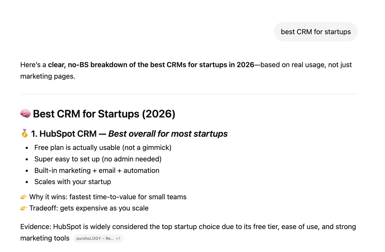 Can you guess what CRM will ChatGPT recommend when you ask it about the "best CRM software for startups"?